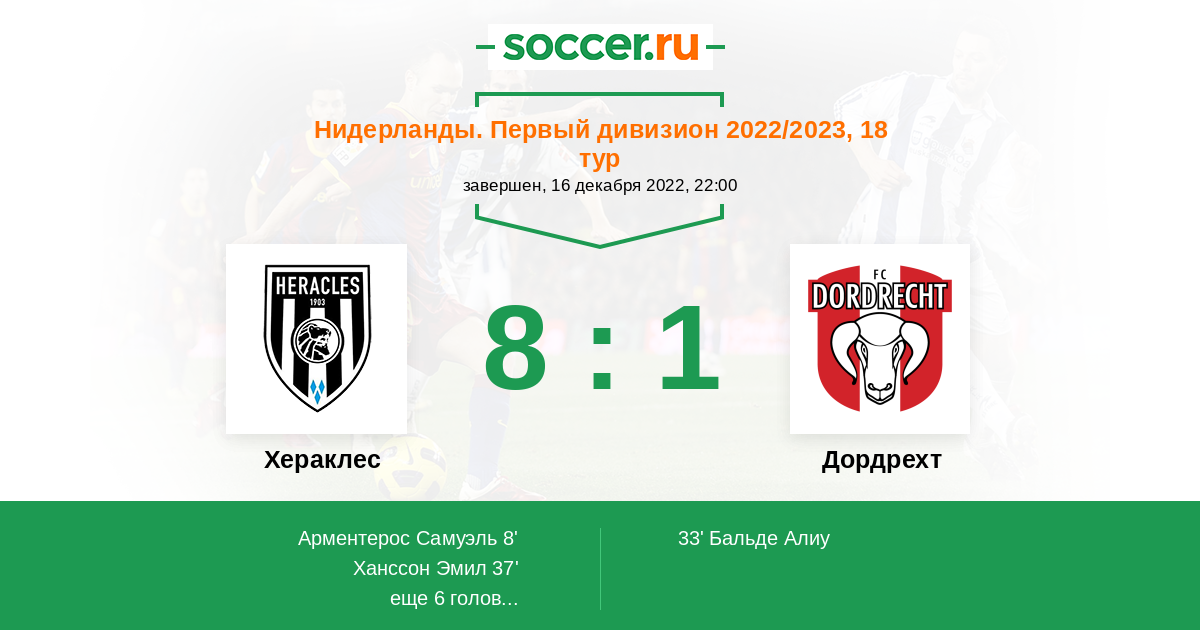 Нидерланды. Кубок 18.12.2019 Хераклес Логотип футбольный клуб Хераклес (Алмело) 3:0 Логотип футбольный клуб Дордрехт Дордрехт