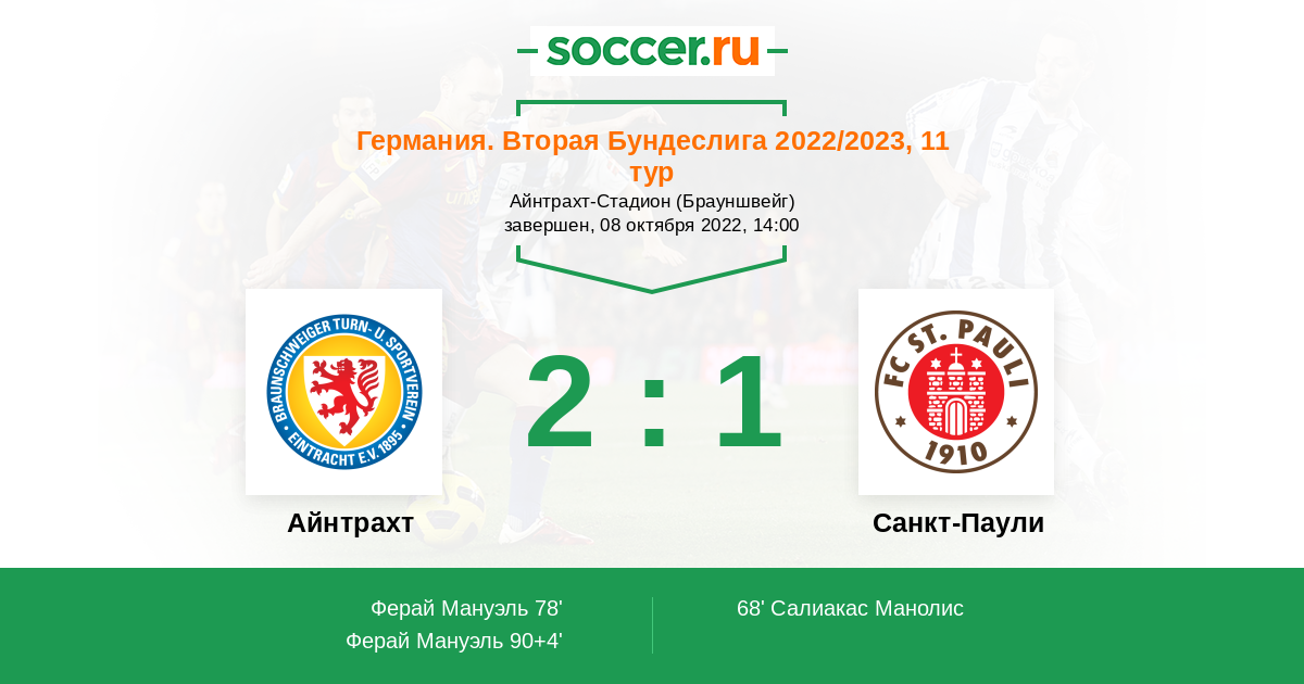 Германия. Бундеслига 2 16.04.2023 Санкт-Паули Логотип футбольный клуб Санкт-Паули (Гамбург) 1:2 Логотип футбольный клуб Айнтрахт (Брауншвейг) Айнтрахт