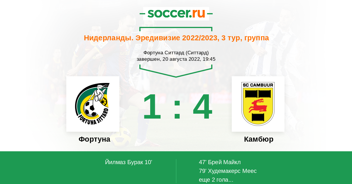 Нидерланды. Эредивизи 16.10.2021 Фортуна Логотип футбольный клуб Фортуна (Ситтард) 1:0 Логотип футбольный клуб Камбюр (Лиуварден) Камбюр