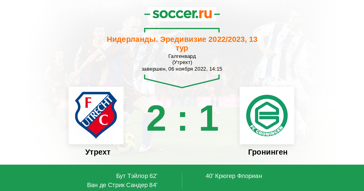 Нидерланды. Эредивизи 07.04.2023 Гронинген Логотип футбольный клуб Гронинген 1:2 Логотип футбольный клуб Утрехт Утрехт