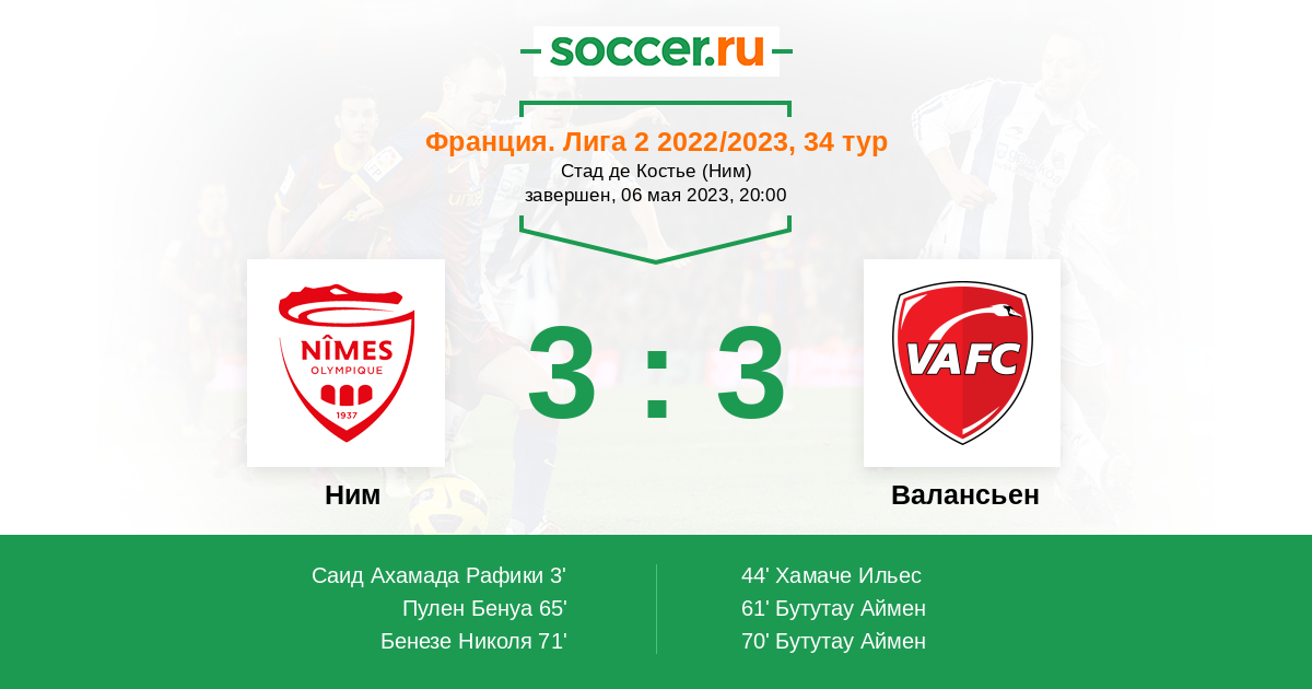 Франция. Лига 2 02.09.2022 Валансьен Логотип футбольный клуб Валансьен 3:2 Логотип футбольный клуб Ним Ним