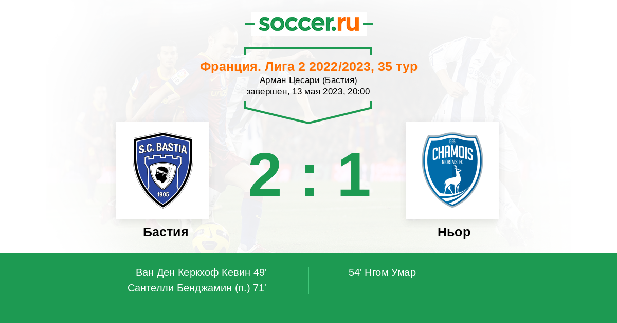 Франция. Лига 2 19.04.2022 Ньор Логотип футбольный клуб Ньор 1:1 Логотип футбольный клуб Бастия Бастия