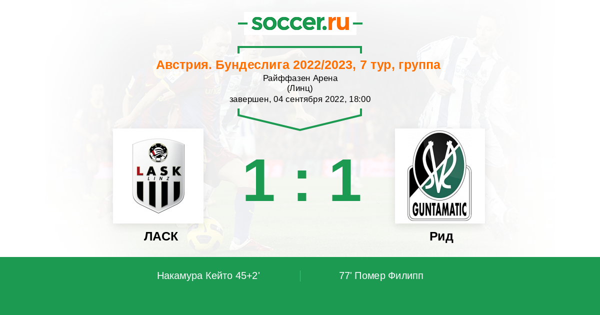 Австрия. Бундеслига 30.08.2025 ЛАСК Логотип футбольный клуб ЛАСК (Линц) 1:3 Логотип футбольный клуб Рид Рид