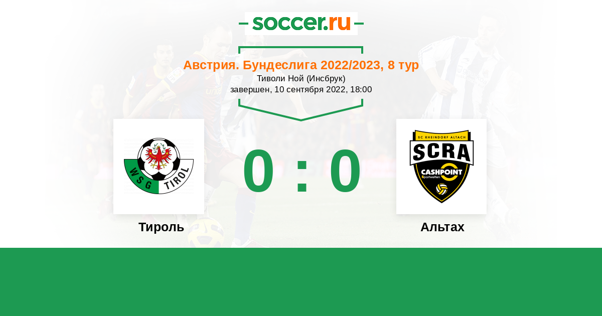 Австрия. Бундеслига 09.04.2022 Тироль Логотип футбольный клуб Тироль (Ваттенс) 0:3 Логотип футбольный клуб Альтах Альтах