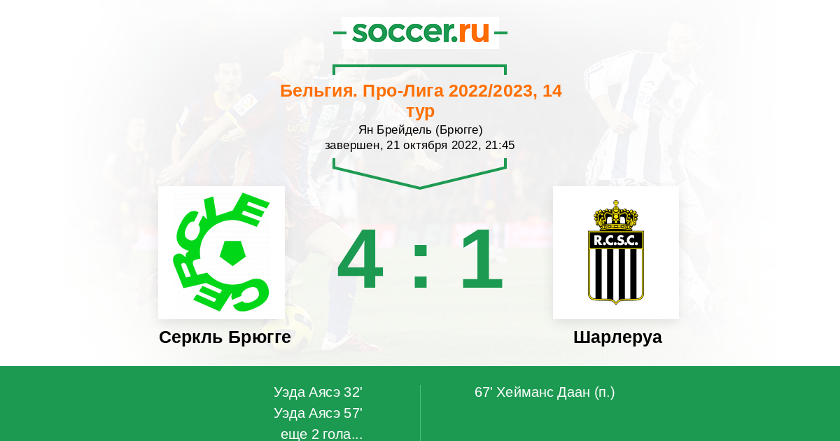Бельгия. Про-Лига 12.04.2014 Серкль Брюгге Логотип футбольный клуб Серкль Брюгге 2:4 Логотип футбольный клуб Шарлеруа Шарлеруа