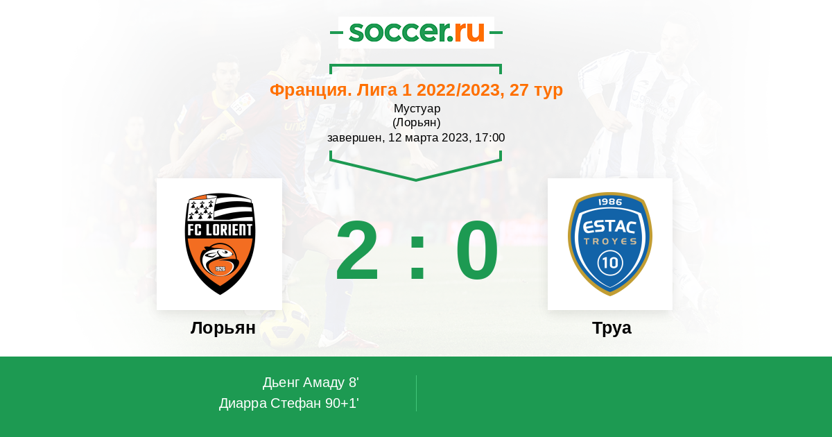 Франция. Лига 1 01.12.2021 Труа Логотип футбольный клуб Труа 2:0 Логотип футбольный клуб Лорьян Лорьян