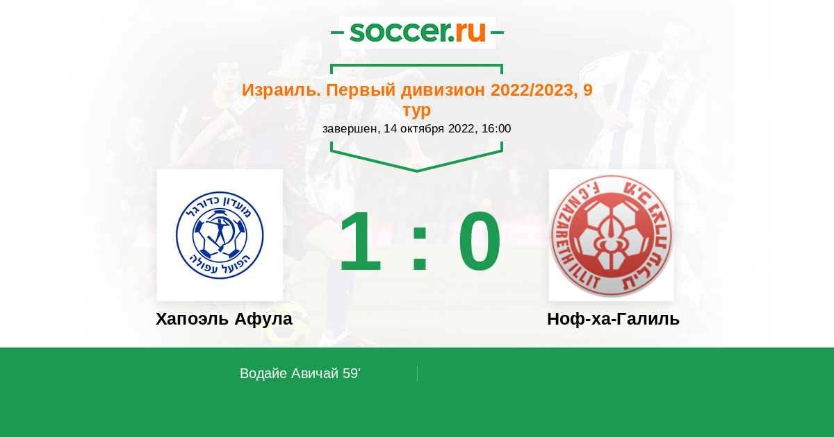 Израиль. Первый дивизион 04.11.2019 Ноф-ха-Галиль Логотип футбольный клуб Ноф-ха-Галиль (Назарет Иллит) 1:0 Логотип футбольный клуб Хапоэль Афула Хапоэль Афула