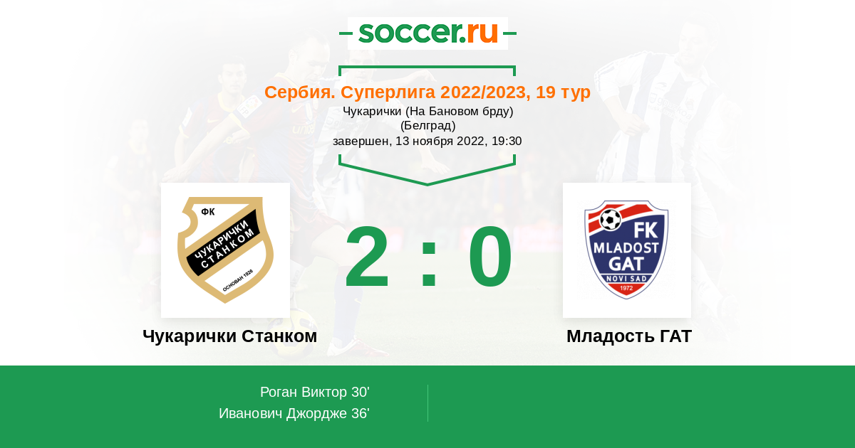Чукарички Станком 2:0 0:0 2:0