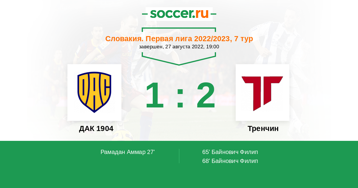 Словакия. Суперлига 22.08.2021 ДАК 1904 Логотип футбольный клуб ДАК 1904 (Дунайська Стреда) 1:1 Логотип футбольный клуб Тренчин Тренчин