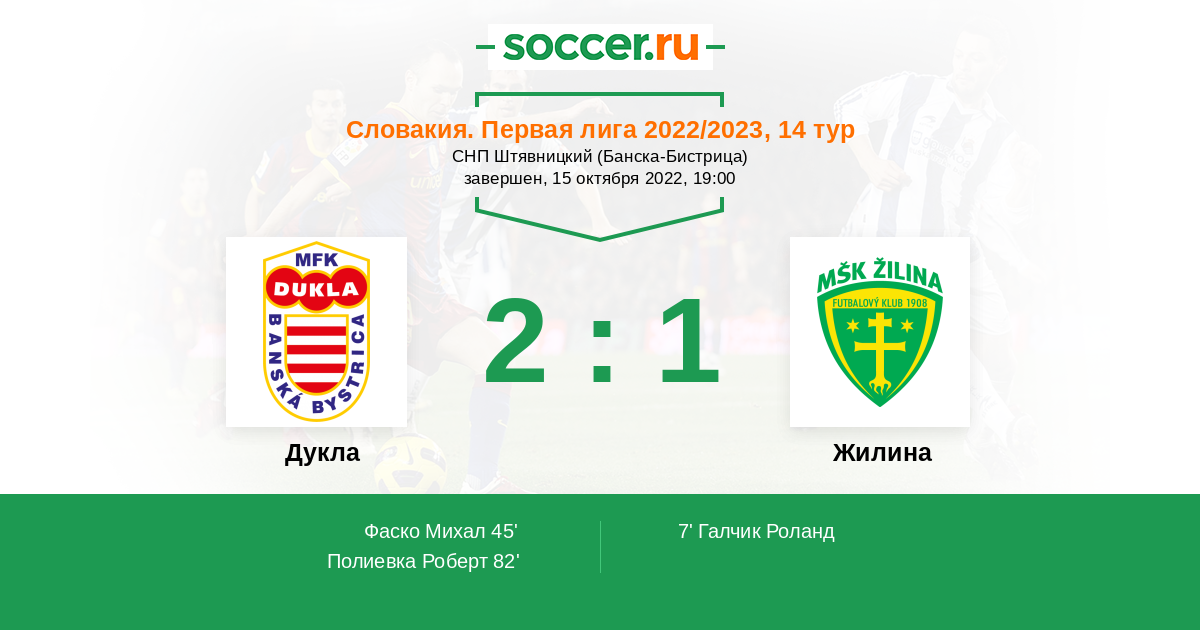 Словакия. Суперлига 16.09.2012 Дукла Логотип футбольный клуб Дукла (Банска-Бистрица) 2:2 Логотип футбольный клуб Жилина Жилина