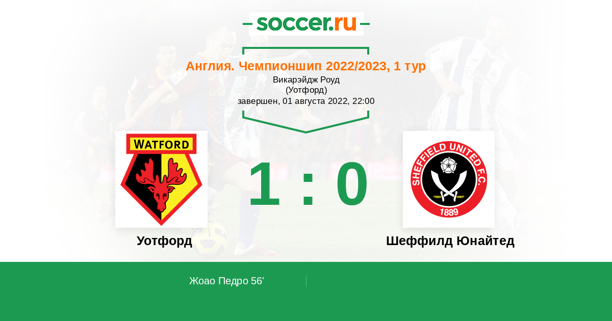 Англия. Чемпионшип 18.08.2007 Уотфорд Логотип футбольный клуб Уотфорд 1:0 Логотип футбольный клуб Шеффилд Юнайтед Шеффилд Юнайтед