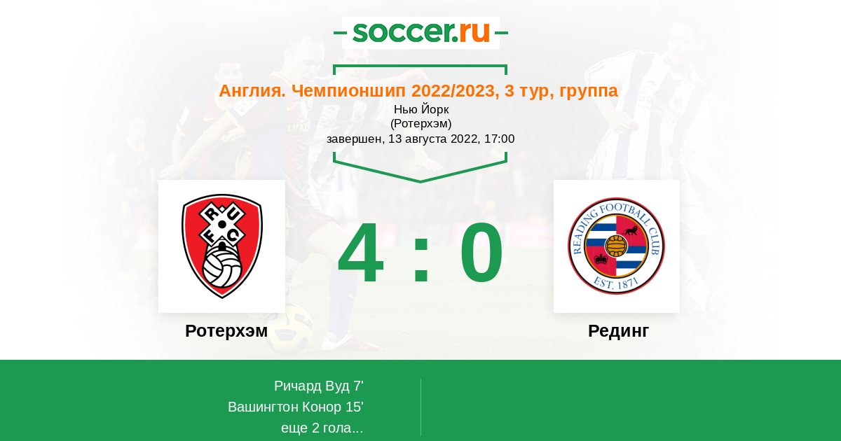 Англия. Чемпионшип 22.10.2016 Ротерхэм Логотип футбольный клуб Ротерхэм (Шеффилд) 0:1 Логотип футбольный клуб Рединг Рединг