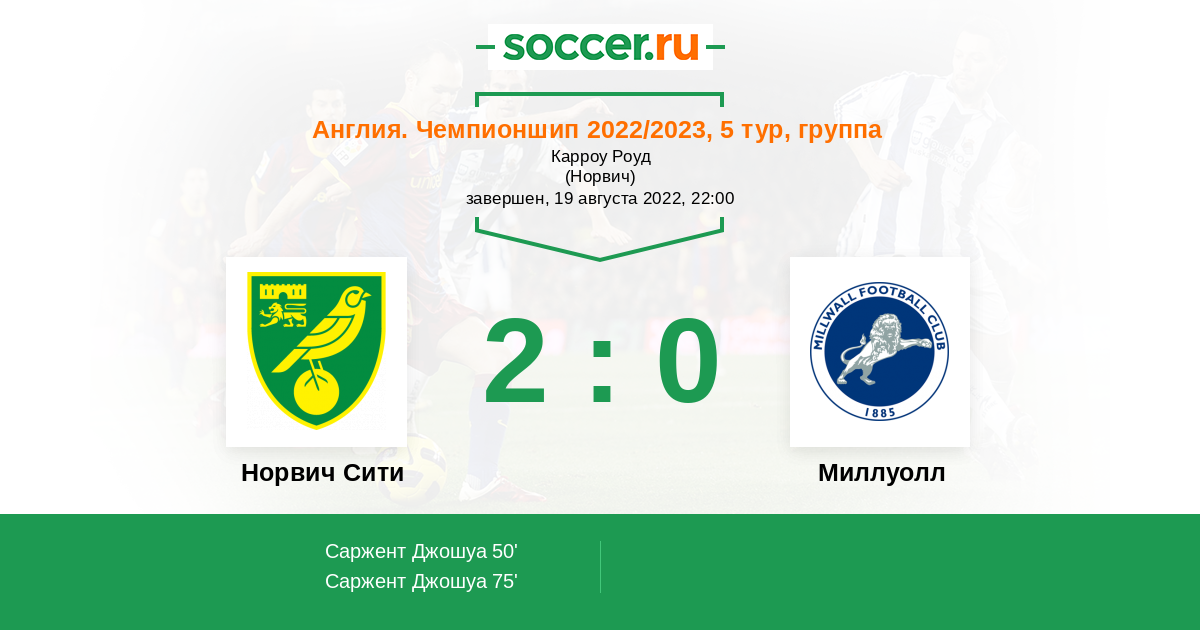Англия. Чемпионшип 20.08.2023 Норвич Сити Логотип футбольный клуб Норвич Сити 3:1 Логотип футбольный клуб Миллуолл (Лондон) Миллуолл