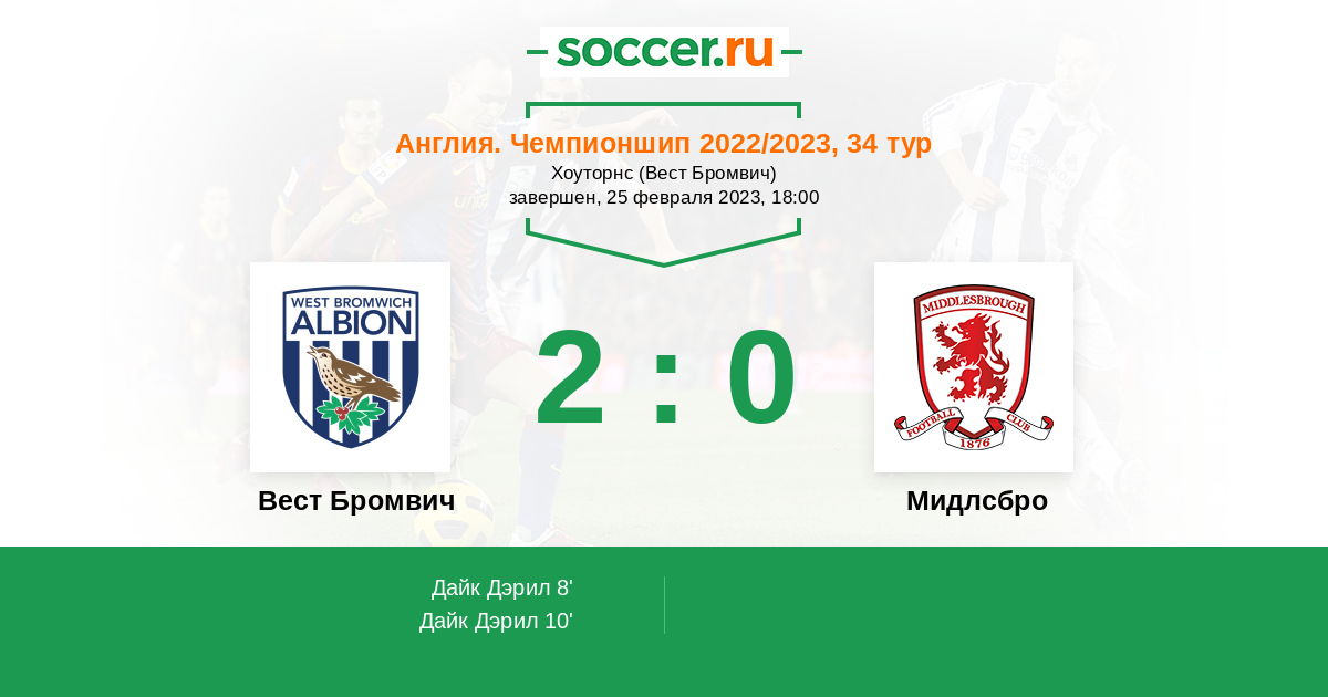 Англия. Чемпионшип 22.02.2022 Мидлсбро Логотип футбольный клуб Мидлсбро 2:1 Логотип футбольный клуб Вест Бромвич Вест Бромвич