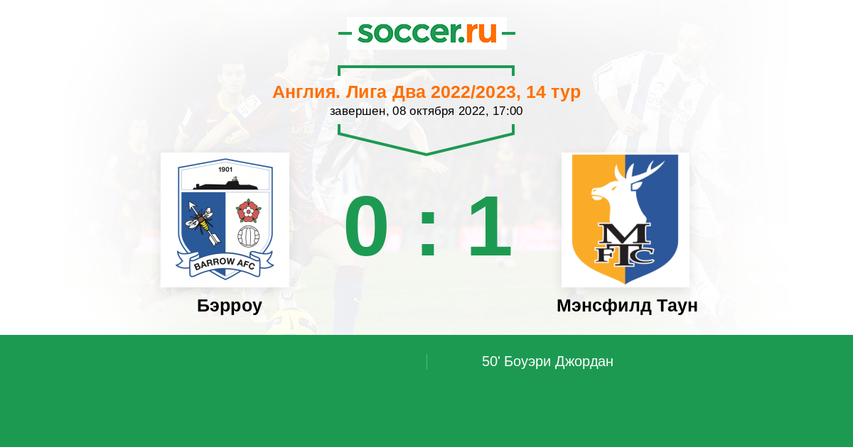 Англия. Вторая Футбольная Лига 23.09.2023 Мэнсфилд Таун Логотип футбольный клуб Мэнсфилд Таун 1:0 Логотип футбольный клуб Бэрроу (Бэрроу-и-Фарнесс) Бэрроу
