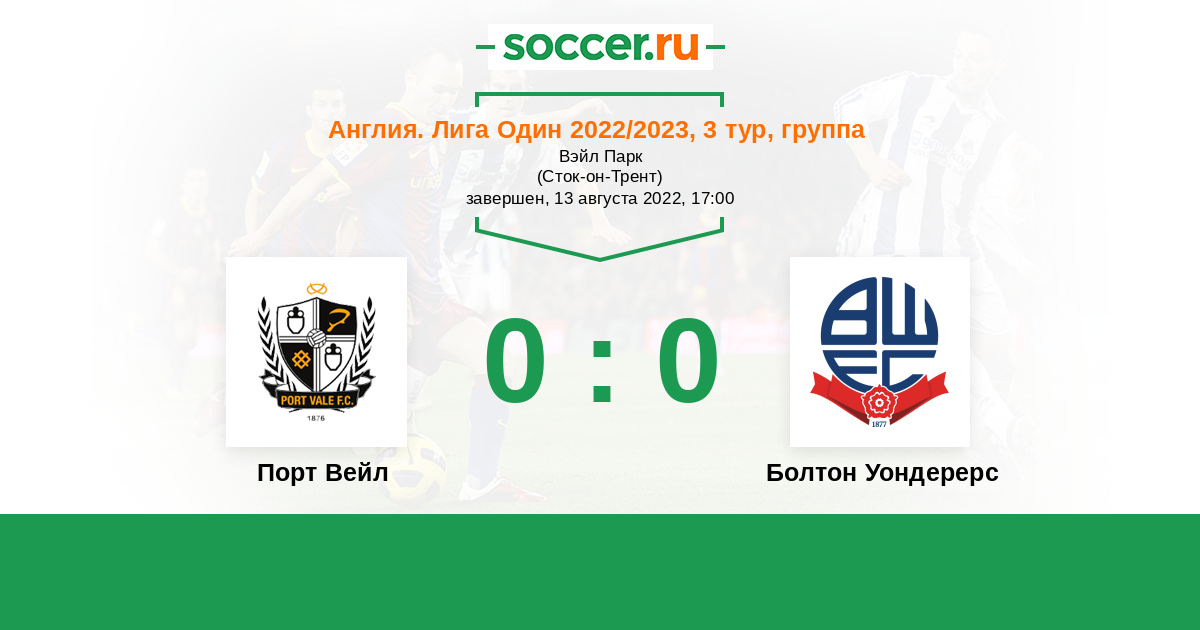 Англия. Первая Футбольная Лига 30.09.2023 Порт Вейл Логотип футбольный клуб Порт Вейл (Сток-он-Трент) 0:1 Логотип футбольный клуб Болтон Уондерерс Болтон Уондерерс