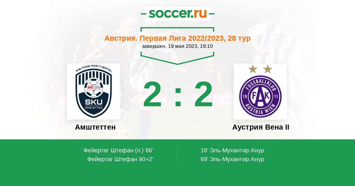 Австрия. Первая Лига 29.04.2022 Аустрия Вена II Логотип футбольный клуб Аустрия Вена II 0:5 Логотип футбольный клуб Амштеттен Амштеттен