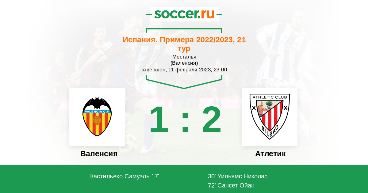 Испания. Кубок 26.01.2023 Валенсия Логотип футбольный клуб Валенсия 1:3 Логотип футбольный клуб Атлетик (Бильбао) Атлетик