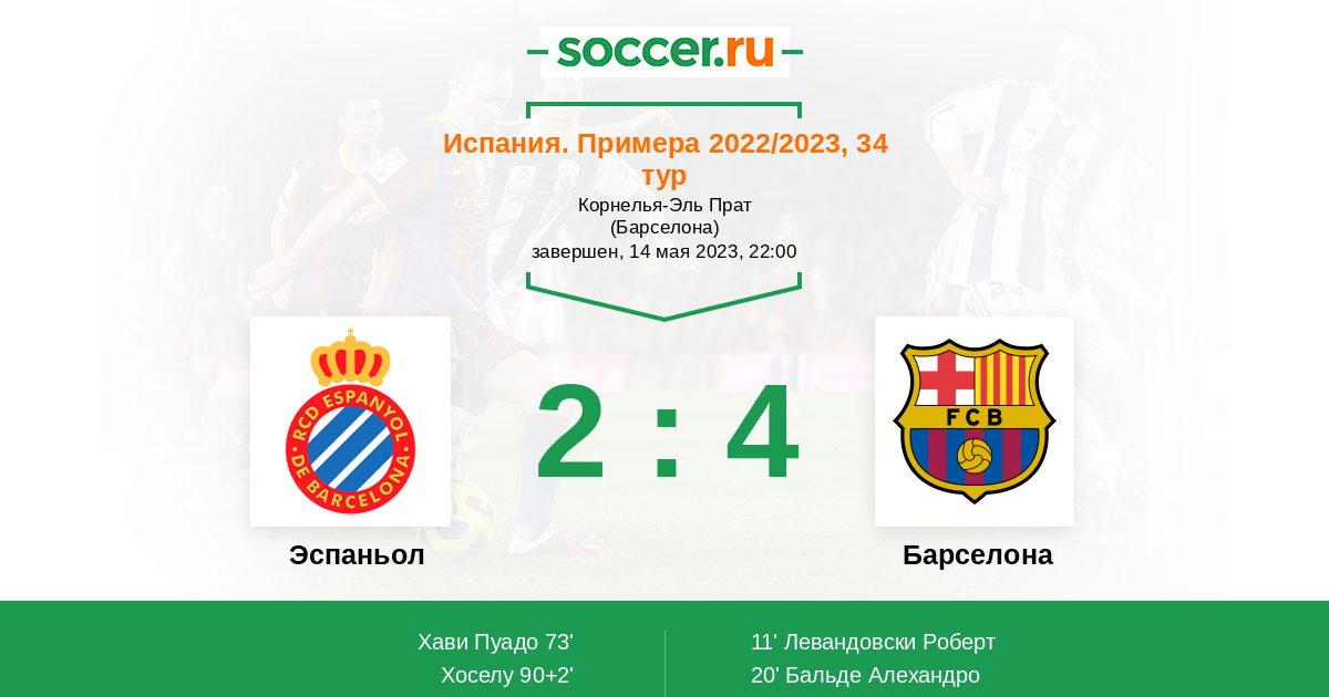 Испания. Примера 31.12.2022 Барселона Логотип футбольный клуб Барселона 1:1 Логотип футбольный клуб Эспаньол (Барселона) Эспаньол