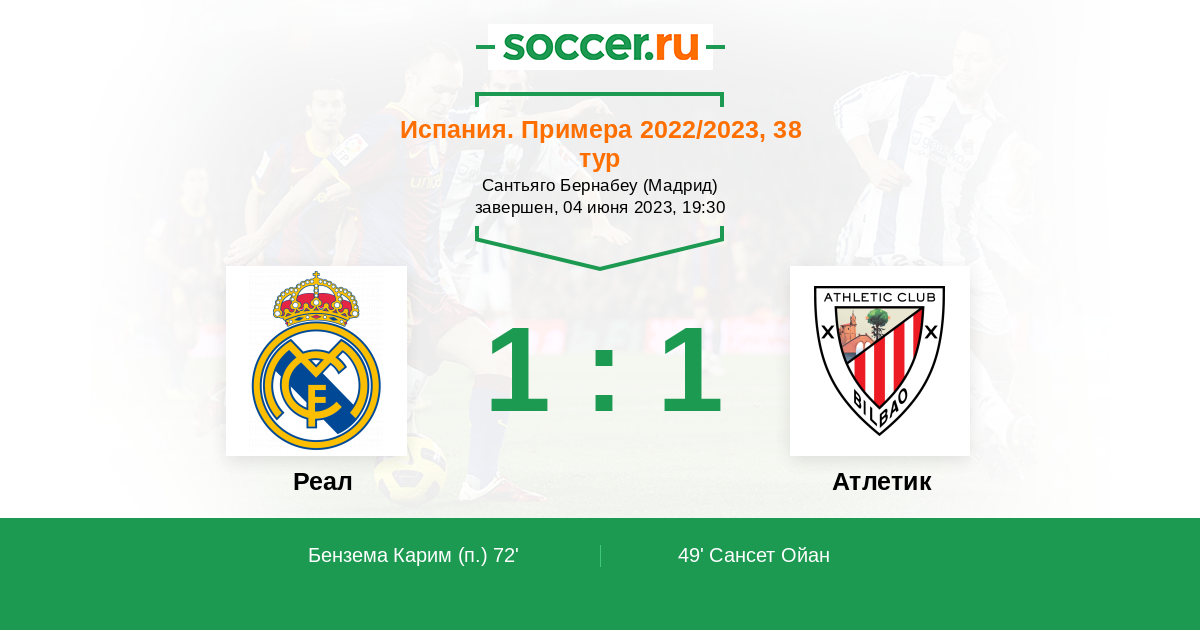 Испания. Примера 22.01.2023 Атлетик Логотип футбольный клуб Атлетик (Бильбао) 0:2 Логотип футбольный клуб Реал (Мадрид) Реал
