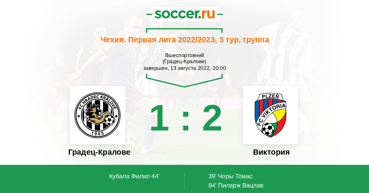 Чехия. Первая Лига 29.07.2012 Виктория Логотип футбольный клуб Виктория (Пльзень) 3:0 Логотип футбольный клуб Градец-Кралове Градец-Кралове