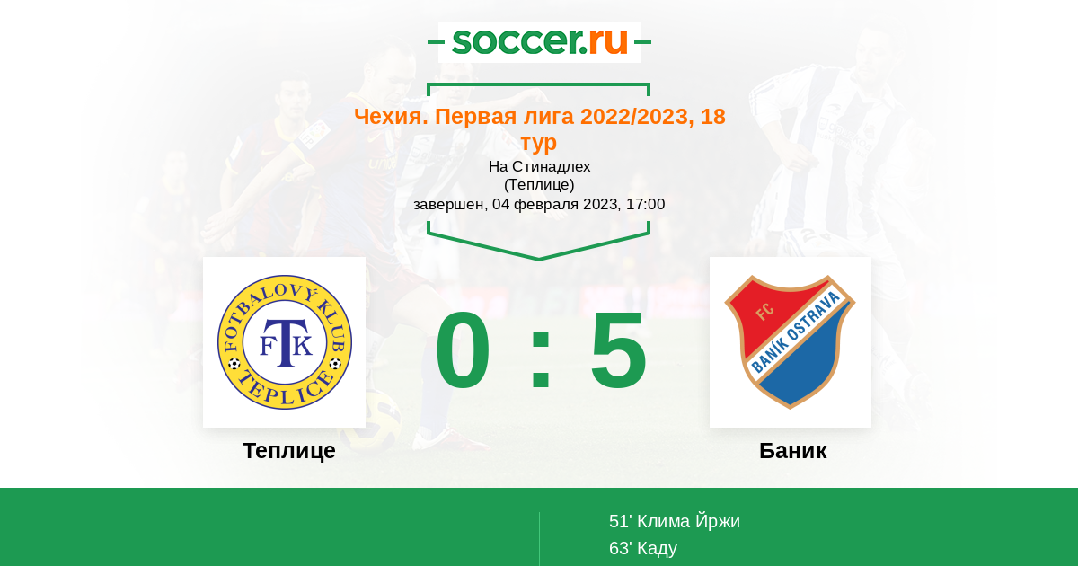 Чехия. Первая Лига 22.02.2025 Баник Логотип футбольный клуб Баник (Острава) 2:0 Логотип футбольный клуб Теплице Теплице