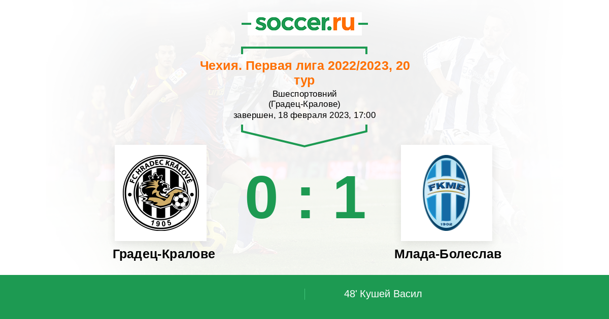 Чехия. Первая Лига 23.09.2012 Млада-Болеслав Логотип футбольный клуб Млада-Болеслав 1:0 Логотип футбольный клуб Градец-Кралове Градец-Кралове