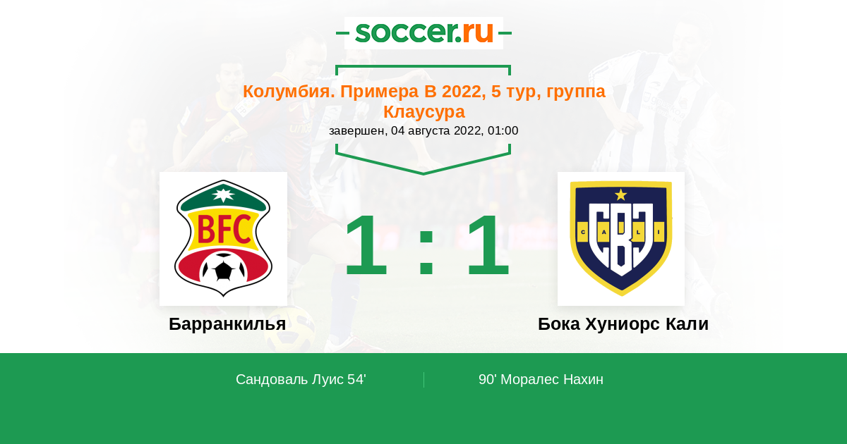 Колумбия. Примера B 26.04.2023 Бока Хуниорс Кали Логотип футбольный клуб Бока Хуниорс Кали (Сантьяго-де-Кали) 1:2 Логотип футбольный клуб Барранкилья Барранкилья