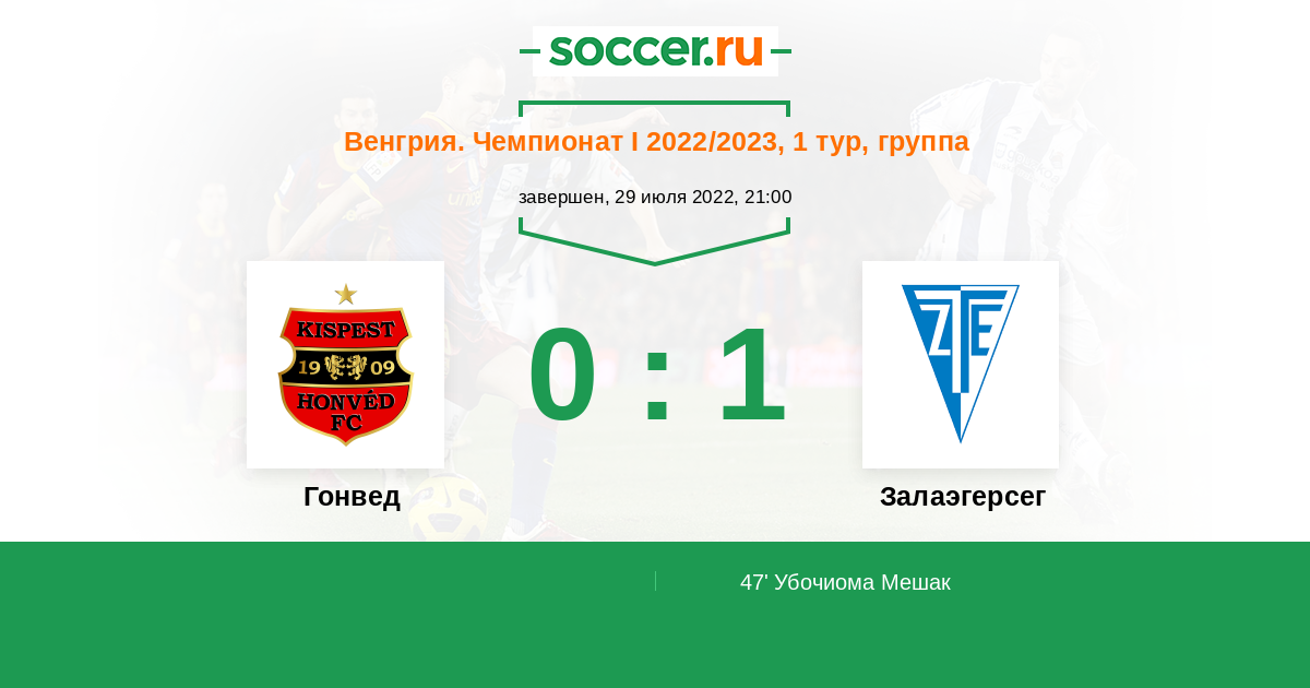 Венгрия. Чемпионат 1 11.03.2023 Гонвед Логотип футбольный клуб Гонвед (Будапешт) 1:0 Логотип футбольный клуб Залаэгерсег Залаэгерсег
