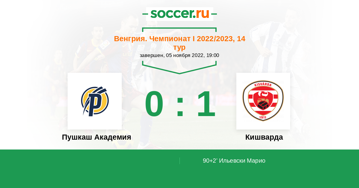 Венгрия. Чемпионат 1 06.10.2023 Пушкаш Академия Логотип футбольный клуб Пушкаш Академия (Фелксут) 1:0 Логотип футбольный клуб Кишварда Кишварда
