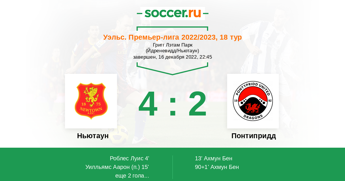 Матчи Уэльс. Премьер-лига 2022/2023