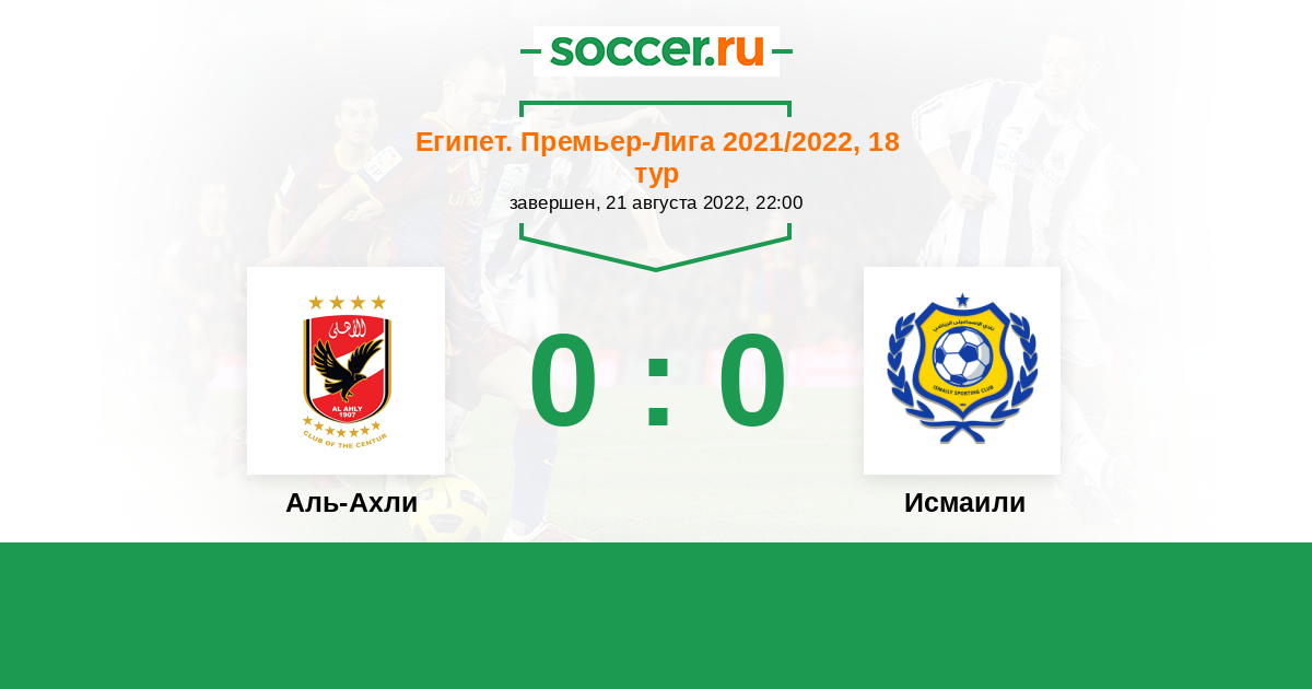 Египет. Премьер-Лига 11.08.2021 Аль-Ахли Логотип футбольный клуб Аль-Ахли (Каир) 1:1 Логотип футбольный клуб Исмаили (Исмаилия) Исмаили