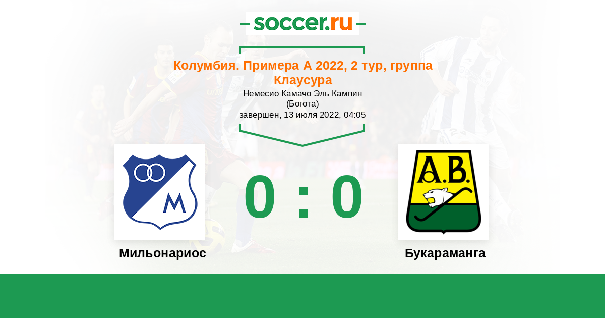 Колумбия. Примера А 16.06.2022 Букараманга Логотип футбольный клуб Букараманга 2:1 Логотип футбольный клуб Мильонариос (Богота) Мильонариос