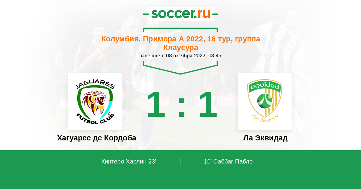 Колумбия. Примера А 17.04.2022 Ла Эквидад Логотип футбольный клуб Ла Эквидад (Богота) 1:0 Логотип футбольный клуб Хагуарес де Кордоба (Монтерия) Хагуарес де Кордоба