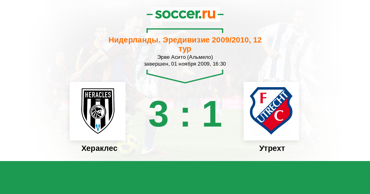 Нидерланды. Эредивизи 31.01.2010 Утрехт Логотип футбольный клуб Утрехт 0:0 Логотип футбольный клуб Хераклес (Алмело) Хераклес