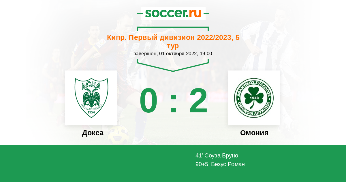 Кипр. Первый Дивизион 20.09.2021 Омония Логотип футбольный клуб Омония (Никосия) 2:1 Логотип футбольный клуб Докса (Катокопиас) Докса