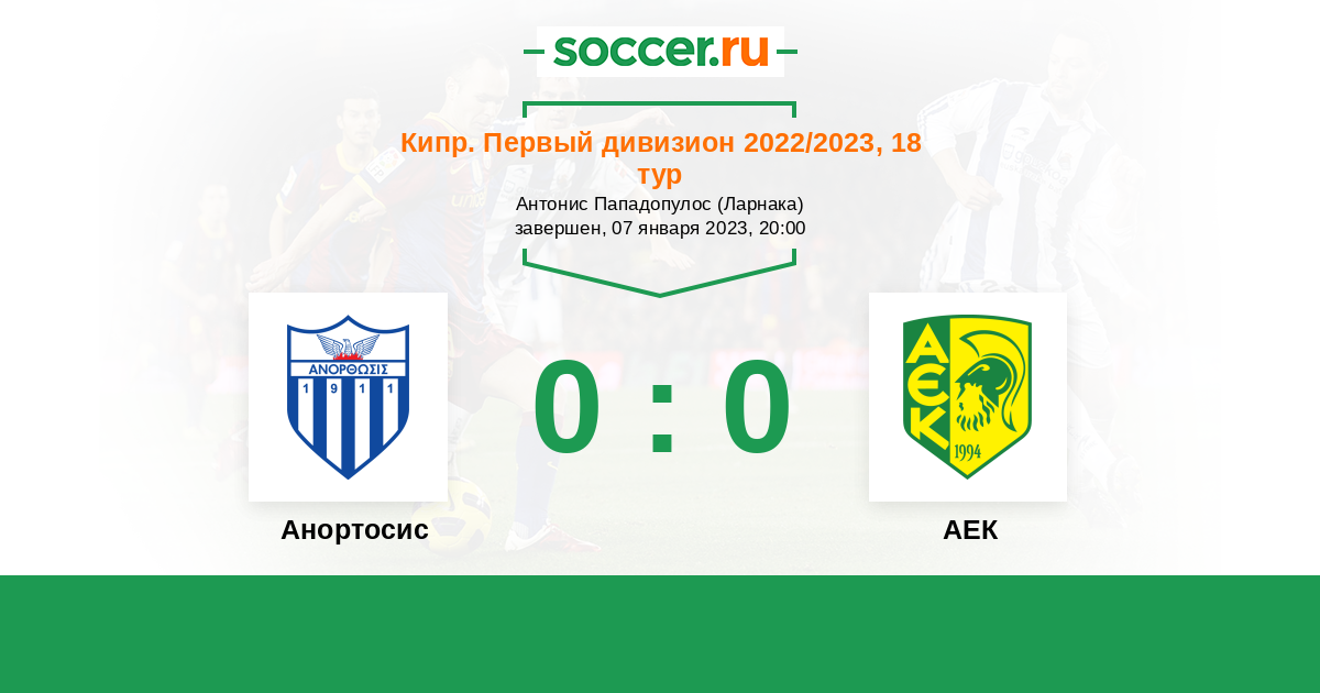 Кипр. Первый Дивизион 07.01.2018 Анортосис Логотип футбольный клуб Анортосис (Ларнака) 3:1 Логотип футбольный клуб АЕК (Ларнака) АЕК