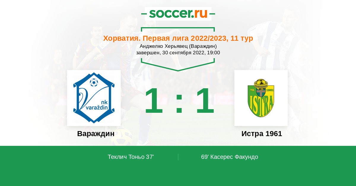 Хорватия. Первая лига 17.09.2023 Вараждин Логотип футбольный клуб Вараждин 1:0 Логотип футбольный клуб Истра 1961 (Пула) Истра 1961