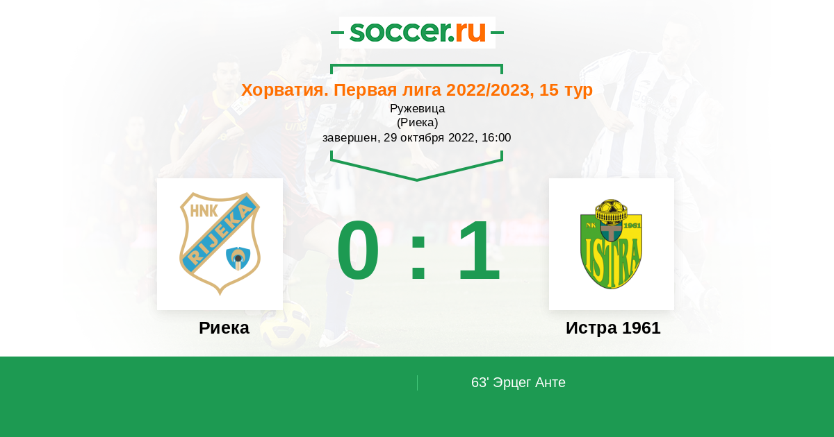 Хорватия. Первая лига 13.09.2015 Истра 1961 Логотип футбольный клуб Истра 1961 (Пула) 0:1 Логотип футбольный клуб Риека Риека