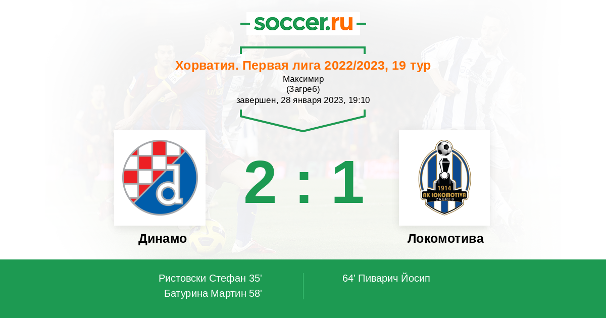 Хорватия. Первая лига 02.02.2021 Динамо Логотип футбольный клуб Динамо (Загреб) 2:0 Логотип футбольный клуб Локомотива (Загреб) Локомотива