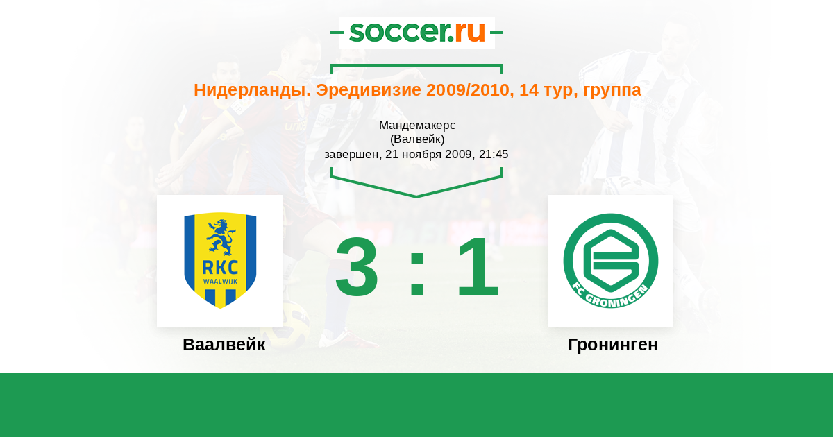 Нидерланды. Эредивизи 05.11.2011 Ваалвейк Логотип футбольный клуб Ваалвейк (Валвейк) 1:1 Логотип футбольный клуб Гронинген Гронинген