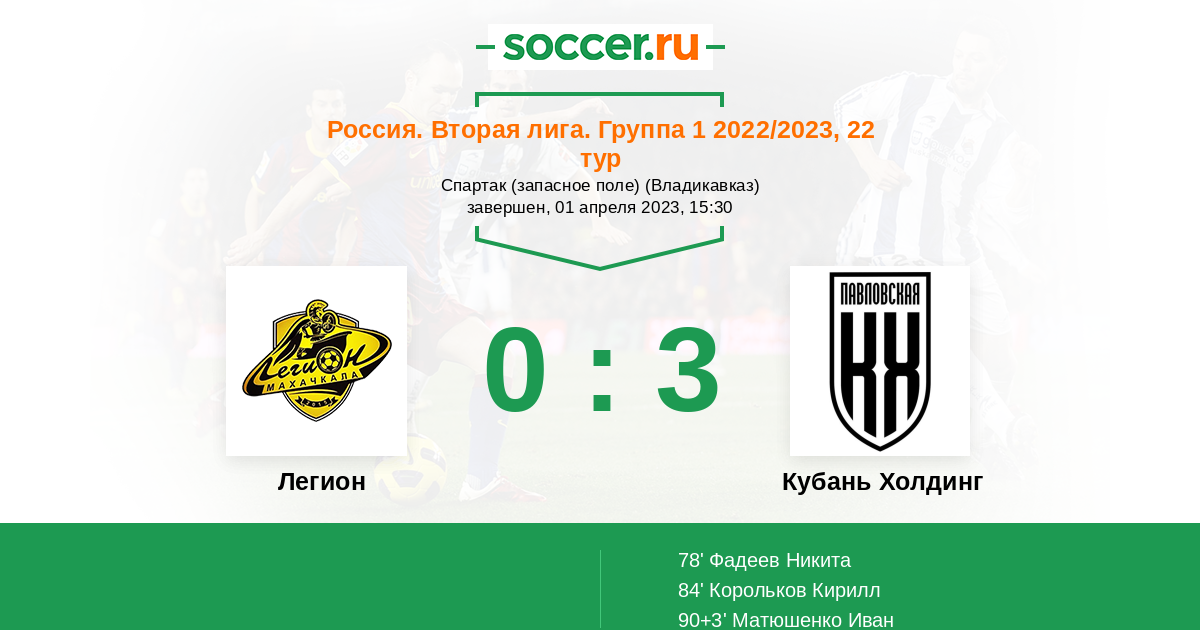 Матчи Россия. Вторая лига. Группа 1 2022/2023