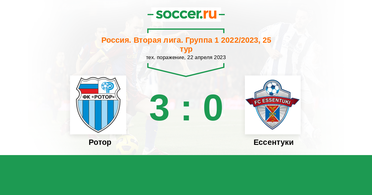 Россия. Вторая лига. Группа 1 22.04.2023 Ротор   3:0 Логотип футбольный клуб Ессентуки Ессентуки