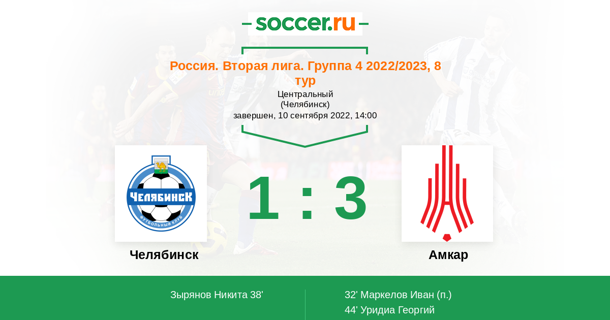 Россия. Вторая лига. Группа 4 30.10.2022 Амкар Логотип футбольный клуб Амкар (Пермь) 1:0 Логотип футбольный клуб Челябинск Челябинск