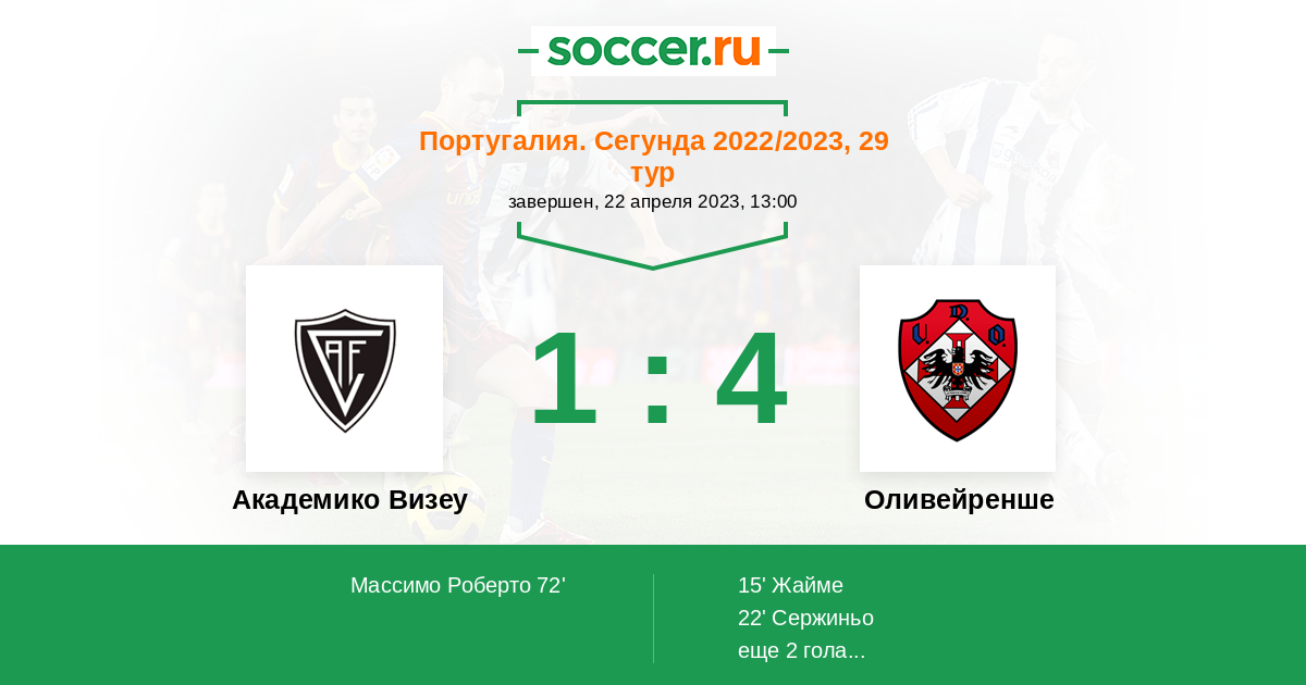 Португалия. Сегунда 25.04.2025 Оливейренше Логотип футбольный клуб Оливейренше (Оливейра-де-Аземейш) 2:0 Логотип футбольный клуб Академико Визеу Академико Визеу