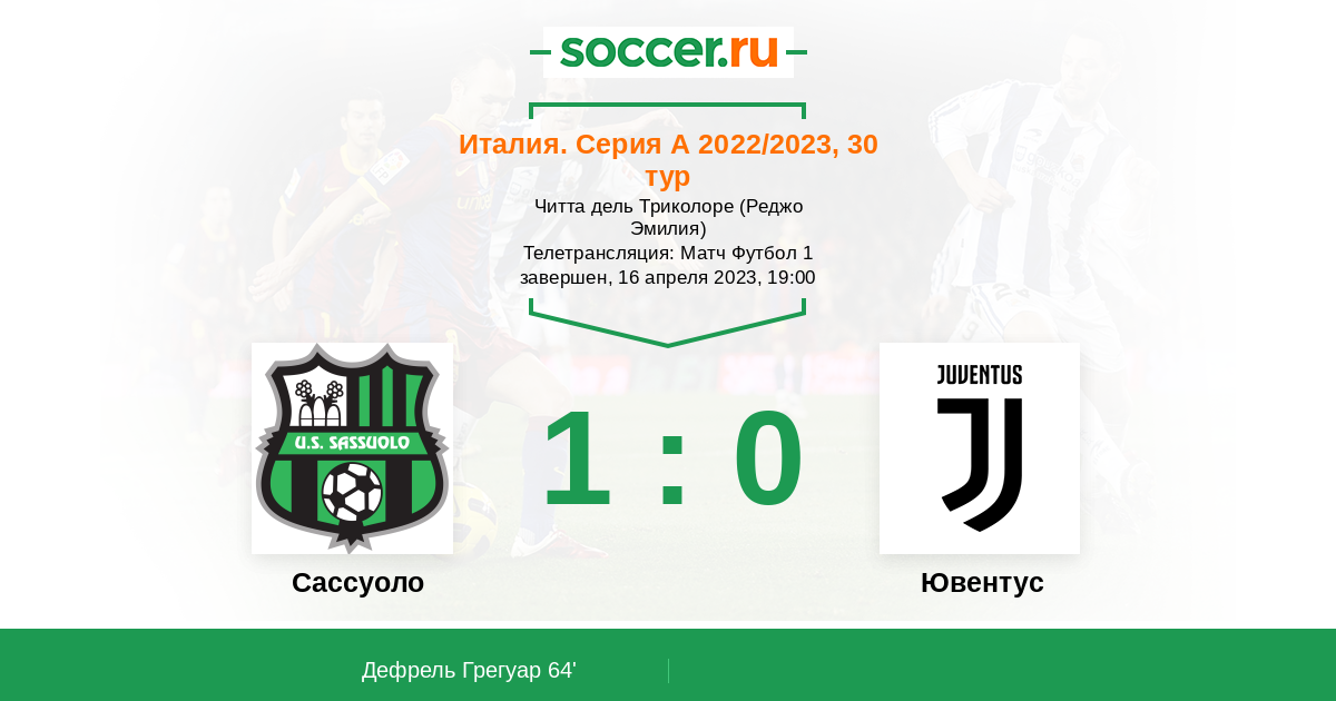 Италия. Серия А 25.04.2022 Сассуоло Логотип футбольный клуб Сассуоло 1:2 Логотип футбольный клуб Ювентус (Турин) Ювентус