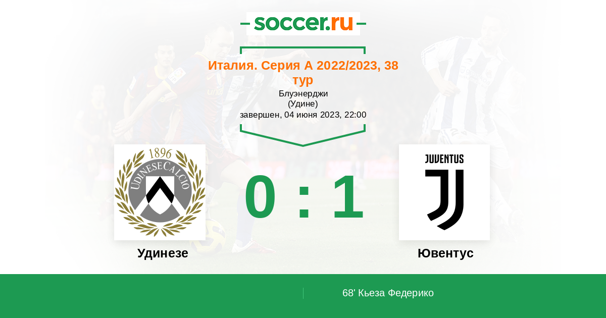 Италия. Серия А 20.08.2023 Удинезе Логотип футбольный клуб Удинезе 0:3 Логотип футбольный клуб Ювентус (Турин) Ювентус