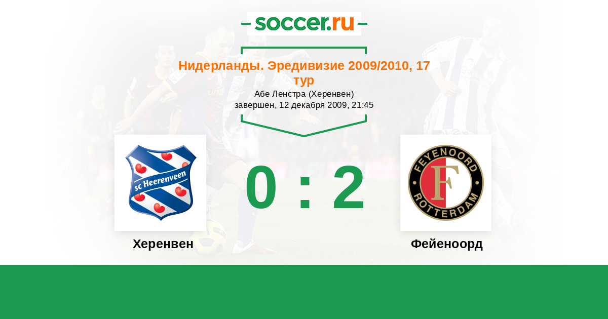 Нидерланды. Кубок 20.01.2009 Фейеноорд Логотип футбольный клуб Фейеноорд (Роттердам) 0:3 Логотип футбольный клуб Херенвен Херенвен