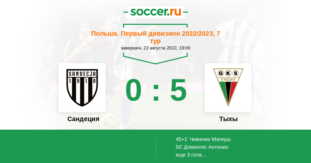 Польша. Первый дивизион 22.08.2021 Тыхы Логотип футбольный клуб Тыхы 2:1 Логотип футбольный клуб Сандеция (Новы-Сонч) Сандеция