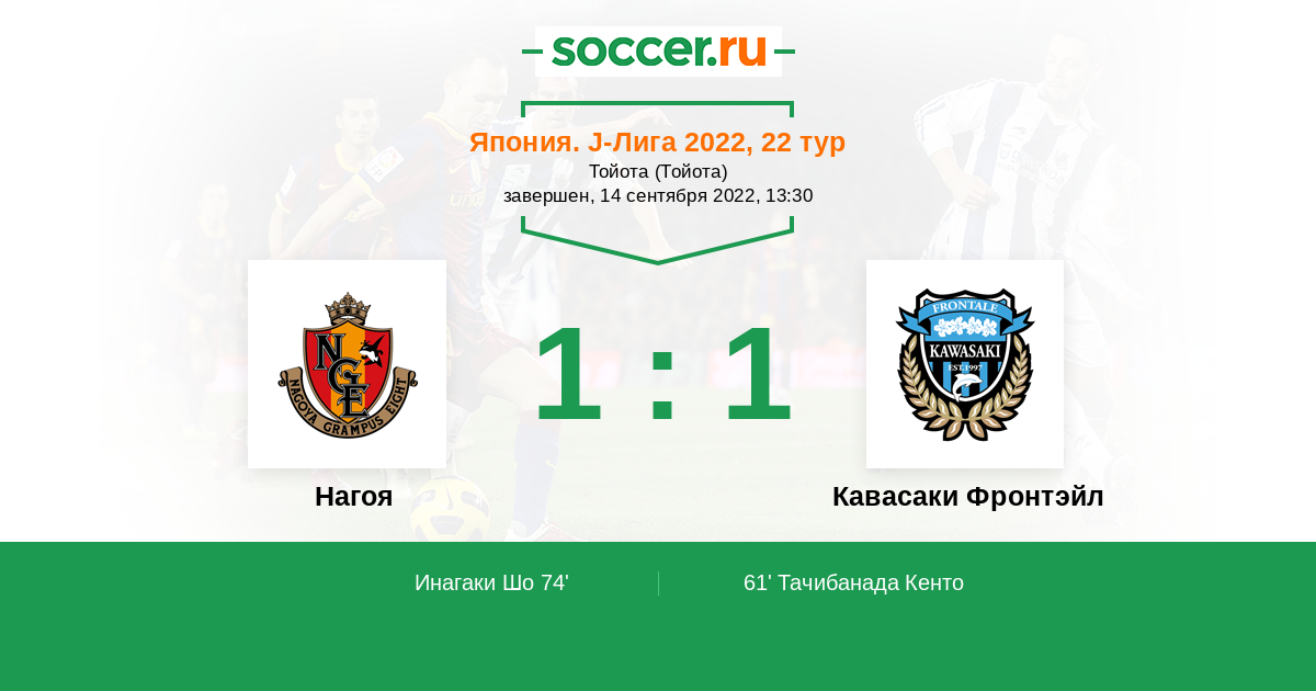 Япония. J-Лига 1 22.09.2024 Нагоя Логотип футбольный клуб Нагоя 2:0 Логотип футбольный клуб Кавасаки Фронтэйл Кавасаки Фронтэйл